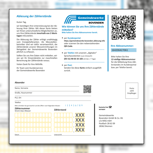 Sie haben eine Mitteilungskarte erhalten, da ein Mitarbeitender der Gemeindewerke Bovenden oder der Beauftragte unseres Ablesedienstleisters, der Metering Service Gesellschaft mbH (MSG), Sie nicht angetroffen hat?